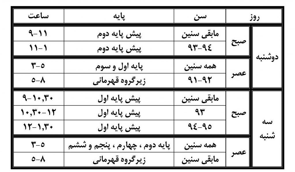 4- برنامه را به دقت مطالعه فرمایید و در ساعت و روز خود به سالن مراجعه کنید.